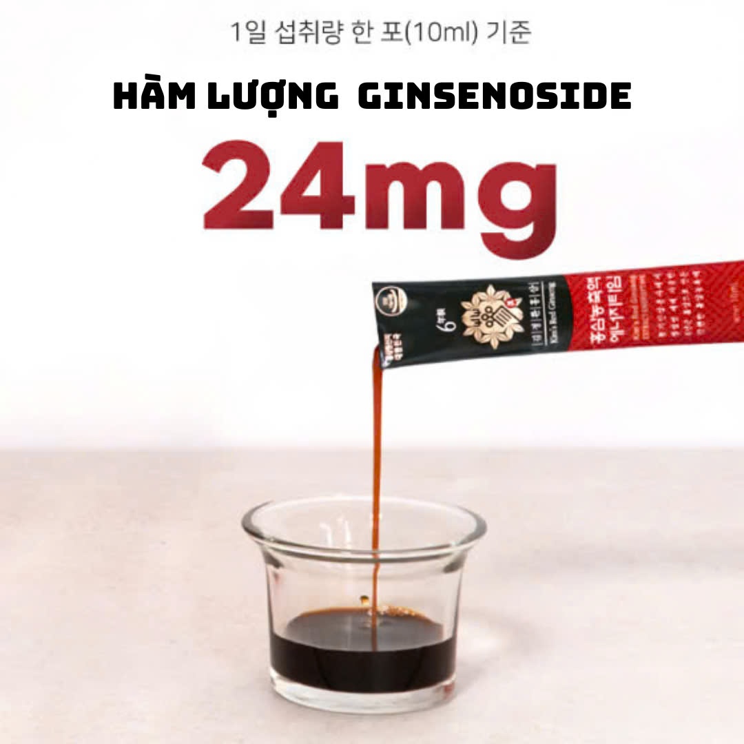 - Hàm lượng Ginsenoside 24mg/gói, bổ sung năng lượng nhanh