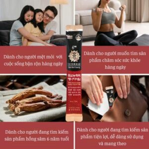 - Sản phẩm cô đặc từ 100% hồng sâm 6 năm tuổi Hàn Quốc