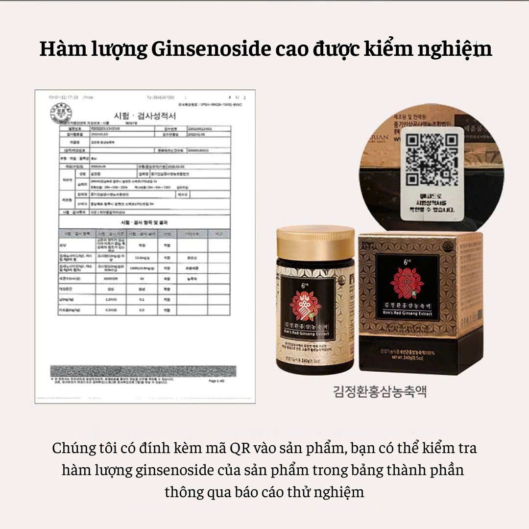 Nhân sâm đỏ Punggi 6 năm tuổi được trồng và chế biến bởi bậc thầy nhân sâm Hàn Quốc, được chiết xuất lặp lại ở nhiệt độ thấp và cô đặc với nước tinh khiết để tạo ra sản phẩm cao cấp với hàm lượng ginsenoside cao. Đây là thực phẩm chức năng được làm từ 100% tinh chất nhân sâm đỏ không chứa chất phụ gia, có tác dụng tăng cường miễn dịch, phục hồi mệt mỏi, cải thiện trí nhớ và lưu thông máu thông qua tác dụng ức chế kết tập tiểu cầu.