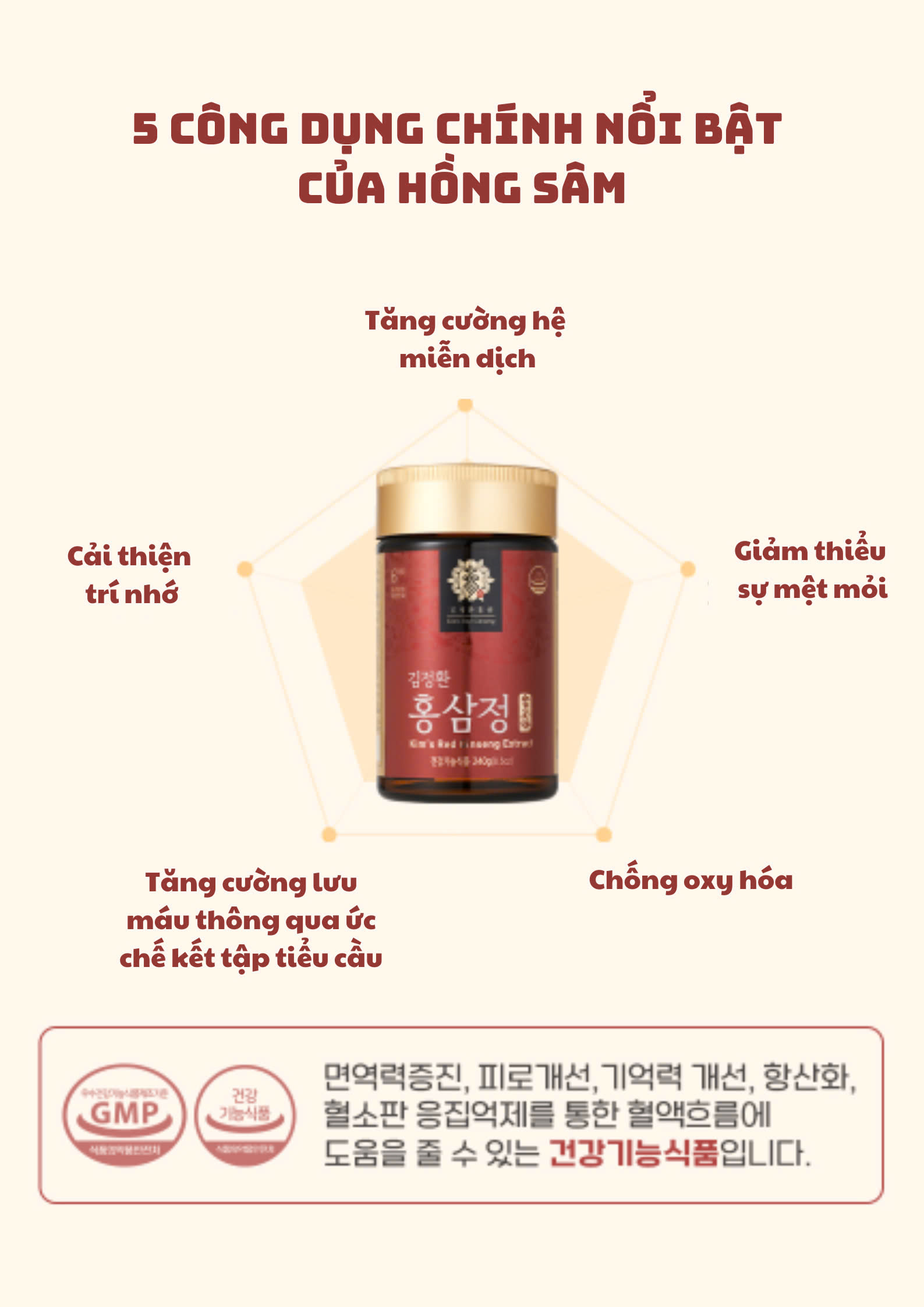 - Chiết xuất từ hồng sâm Punggi 6 năm tuổi – vùng trồng sâm danh tiếng của Hàn Quốc