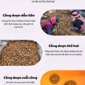 - Sử dụng phần thân đồng đều, chất lượng cao của hồng sâm đỏ 6 năm tuổi
