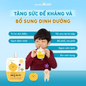Hồng sâm hoa lê chuông Chunho Ncare là một sản phẩm nổi bật được chiết xuất từ các thành phần thiên nhiên quý giá như hoa chuông, lê, táo tàu, cùng với vitamin C và nhiều công thức hỗn hợp khác. Sản phẩm này được sản xuất trên dây chuyền công nghệ tiên tiến của Hàn Quốc, đảm bảo chất lượng cao và an toàn cho trẻ em.