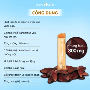 | Lọc nhung hươu cô đặc | Tăng cường sức đề kháng, kích thích hệ tiêu hóa, hỗ trợ phát triển toàn diện về thể chất và trí tuệ, giúp cơ thể khỏe mạnh hơn mỗi ngày. |